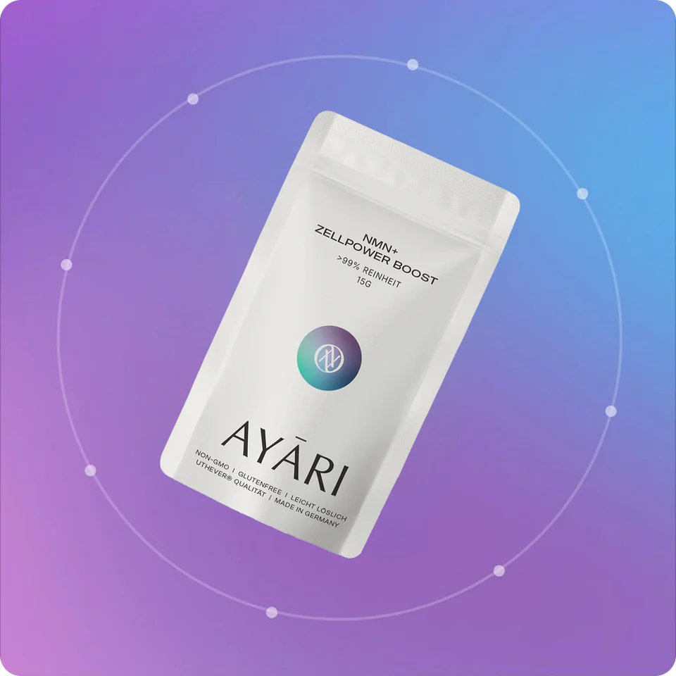 Mit nur einer Portion täglich unterstützt AYARI NMN+ deine natürliche Zellfunktion – für ein aktives Lebensgefühl und neue Energie von innen.
