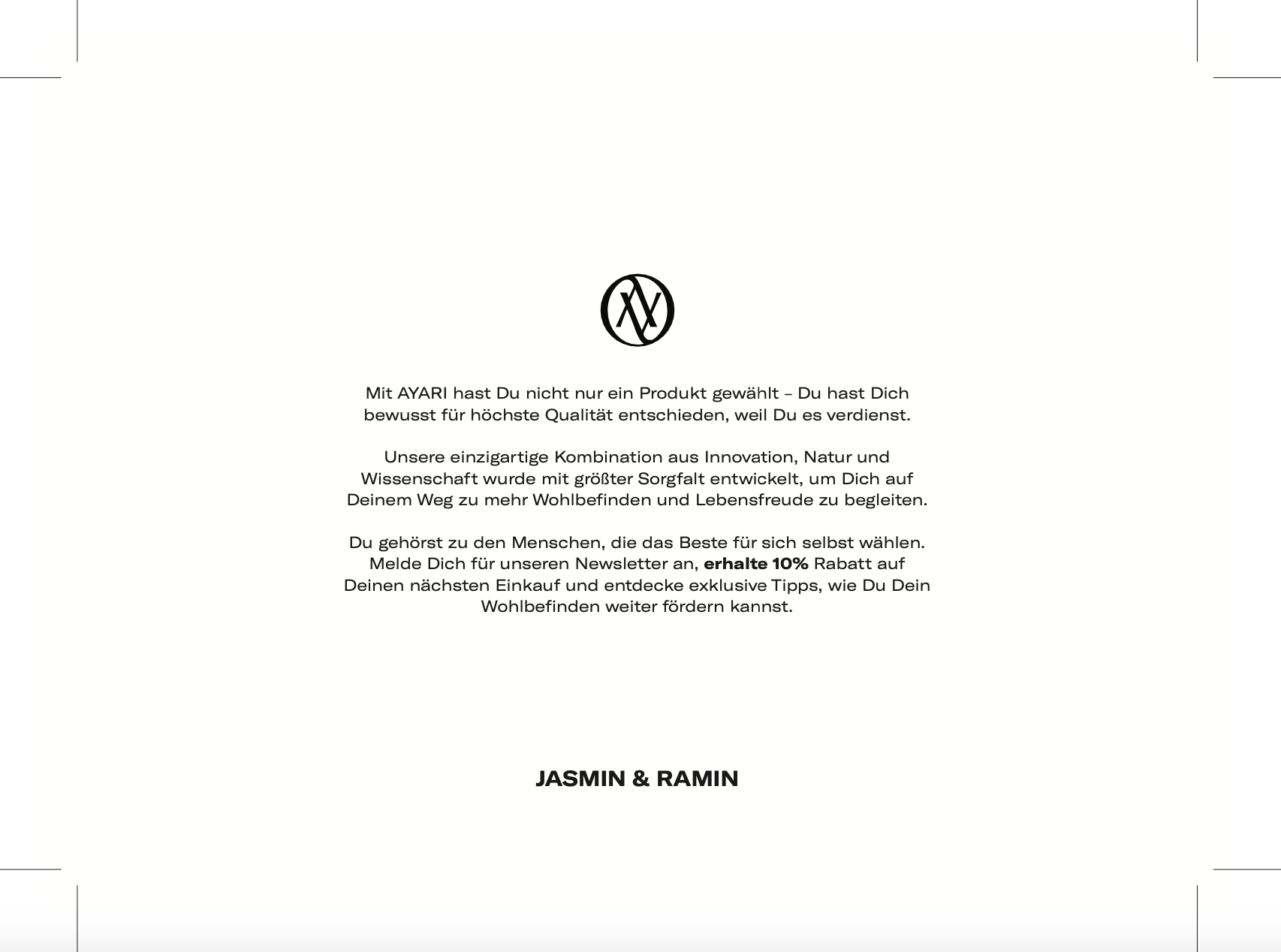 Unsere Verpflichtung zu Qualität zeigt sich in jedem Schritt – von natürlichen Inhaltsstoffen bis hin zu wissenschaftlich fundierten Formulierungen. Mit AYARI wählst Du Premium-Produkte, die spürbare Ergebnisse liefern und Dein Wohlbefinden steigern.